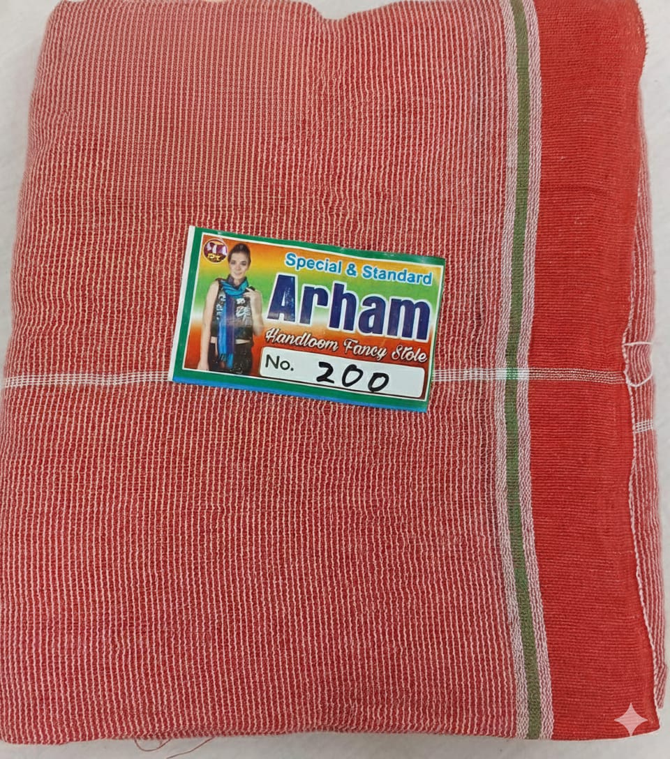 This Arham Handloom Gamcha (No.200 Design) is made using premium cotton yarn for durability and comfort. Its lightweight and breathable texture makes it ideal for everyday use—whether as a shoulder towel, kitchen cloth, dusting cloth, or multipurpose home-use fabric. The red striped traditional design with border adds a classic handloom touch. Highly absorbent, quick drying, and long-lasting even after multiple washes.