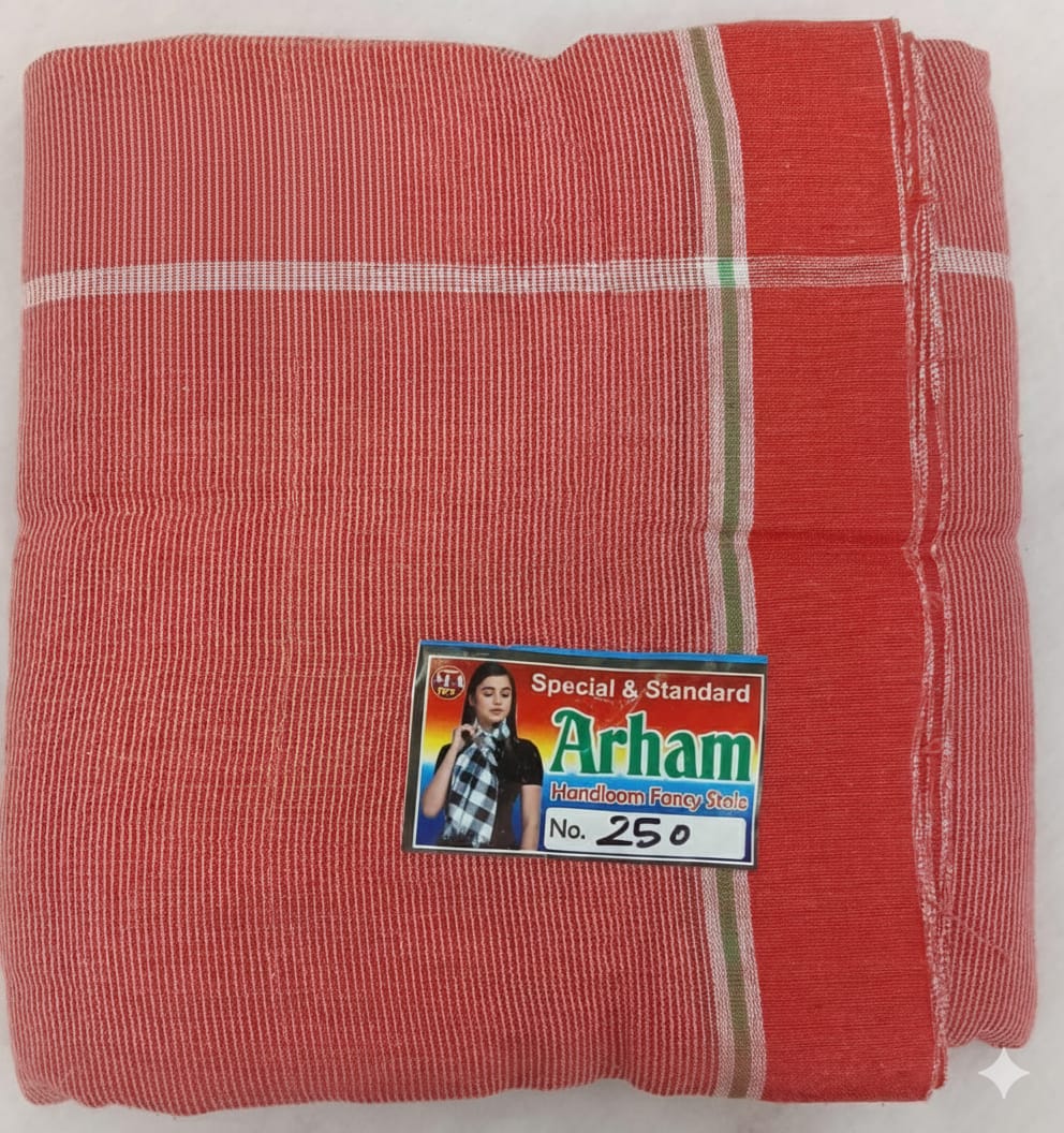 This Arham Handloom Gamcha (No.250 Design) is made using premium cotton yarn for durability and comfort. Its lightweight and breathable texture makes it ideal for everyday use—whether as a shoulder towel, kitchen cloth, dusting cloth, or multipurpose home-use fabric. The red striped traditional design with border adds a classic handloom touch. Highly absorbent, quick drying, and long-lasting even after multiple washes.