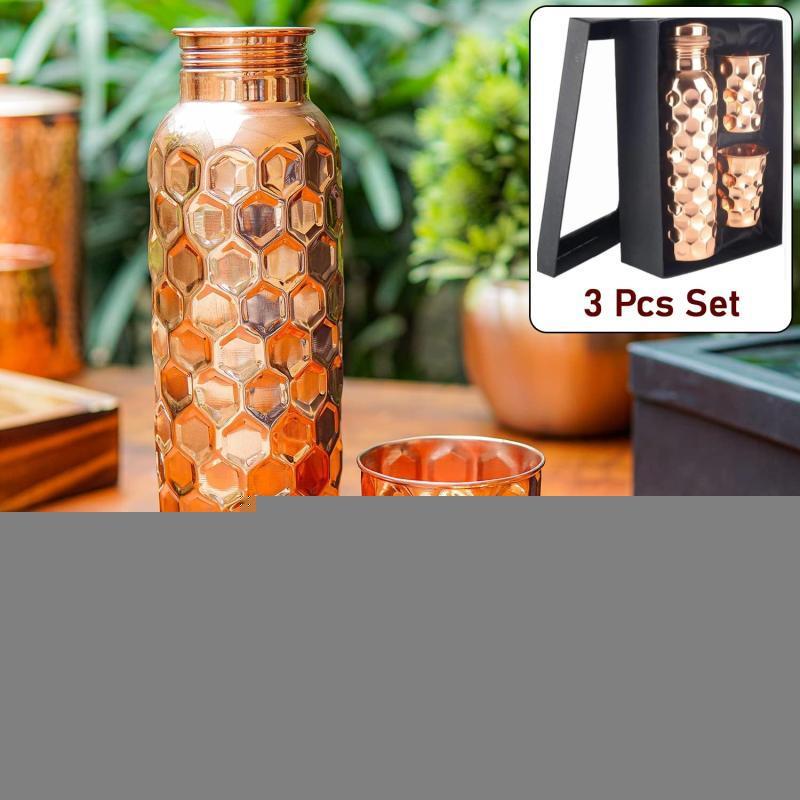 Style Code: 13799_diamond_cut_copper_bottle_n_glass_3pc