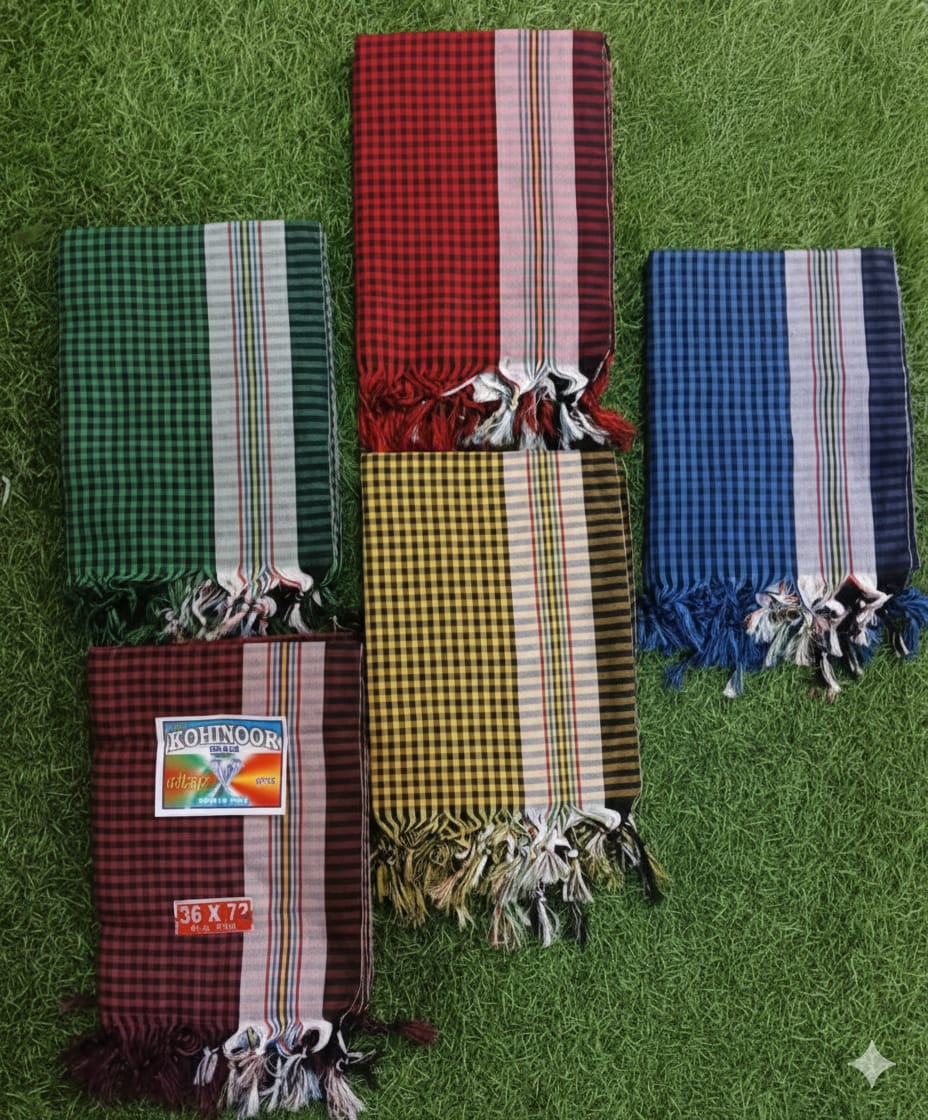 This Kohinoor Handloom Cotton Gamcha comes in a big 36×72 inch size with a premium checkered design. The fabric is woven from high-quality cotton yarn, making it soft, durable, and quick-drying. The multicolour stripes and fringed edges give it a classic traditional look.