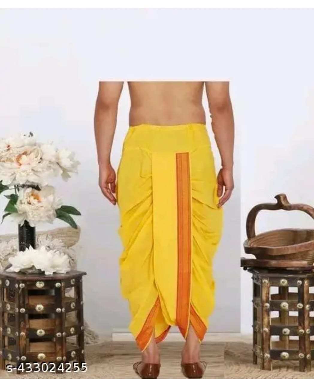 2)Facing Problem to wear dhoti ? , Don't worry we are introducing the ready to wear dhoti which you can easily wear or drape Free Size Readymade Dhoti and Angwastram