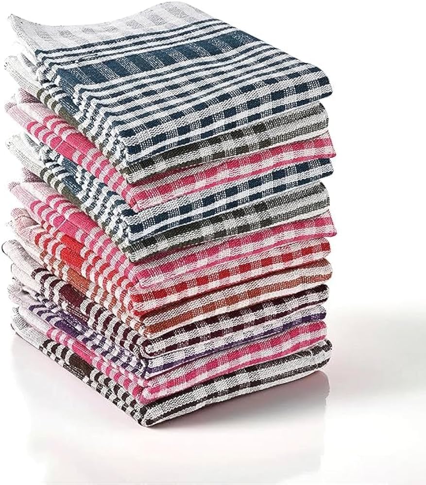 These towels come in multiple vibrant colors and traditional check patterns, making them both functional and visually appealing for any kitchen setup. Ideal for wiping utensils, cleaning kitchen counters, drying vegetables, or general household cleaning.Approx. 14 × 12 inches (as you said)