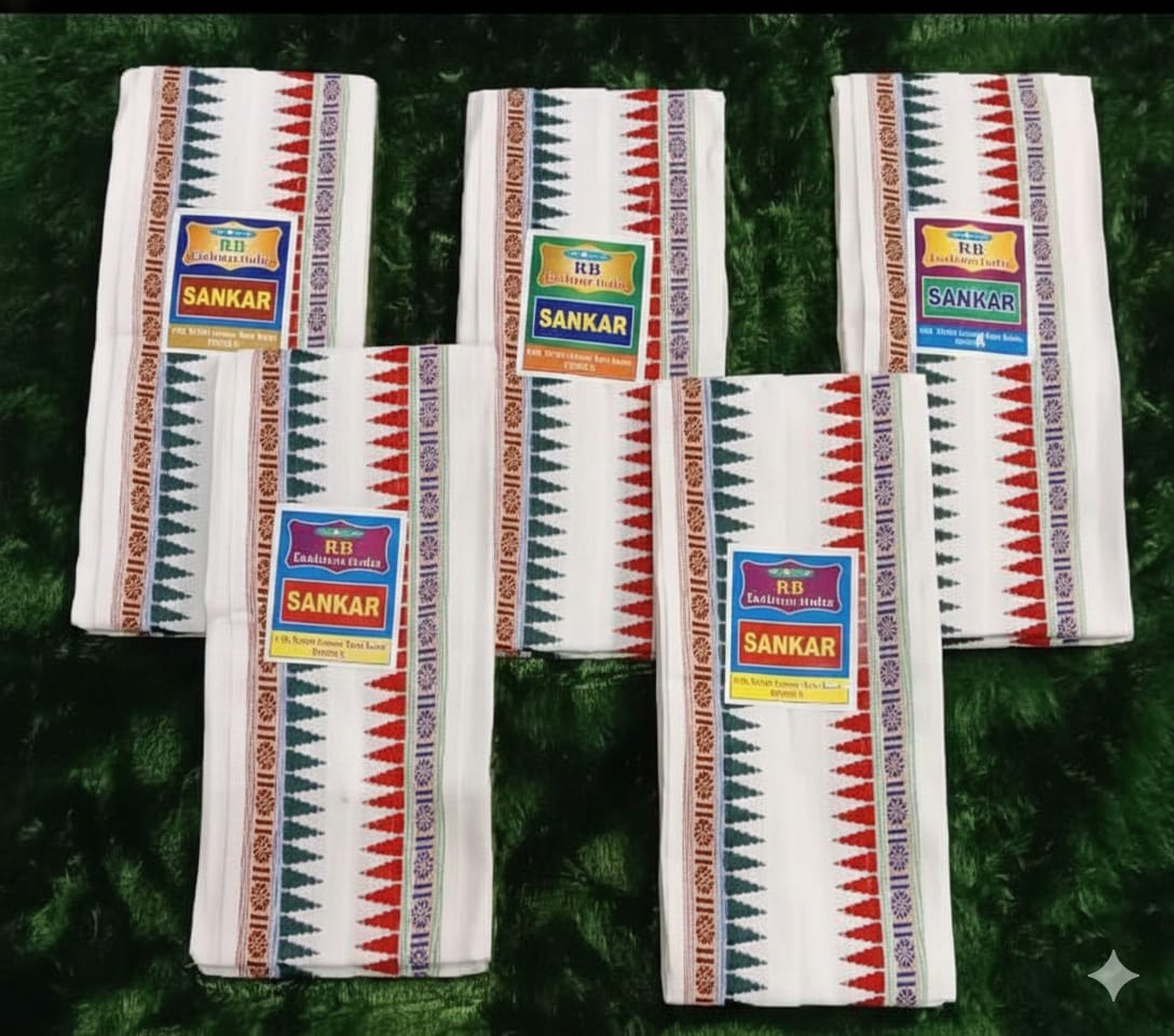 Soft and durable pure cotton SANKAR gamcha with multicolor traditional border. High-absorbent, lightweight, skin-friendly, and perfect for daily use, bathing, travelling, kitchen, or gifting.