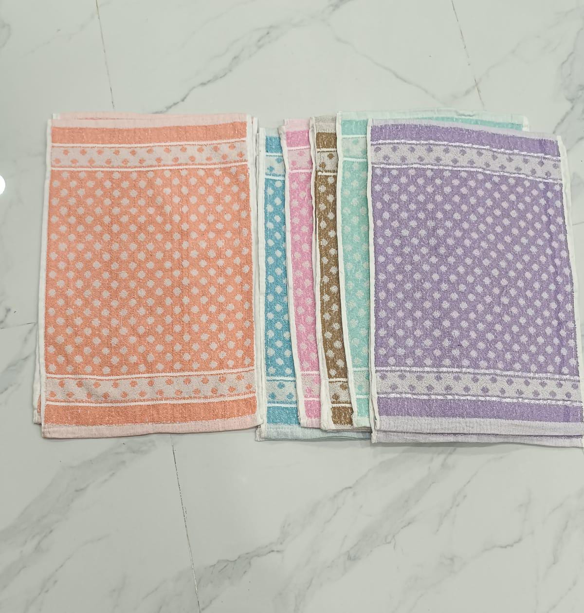 This set of 14×12 inch soft cotton hand towels offers quick absorption and gentle feel on skin. Designed with a stylish dotted pattern and available in assorted pastel colours, these towels are perfect for everyday home use. Ideal for kitchen cleaning, hand wiping, kids’ use, travel, office desk or bathroom utility. Lightweight, durable and quick-dry fabric makes them highly practical for regular washing. A budget-friendly, high-use product with great quality.