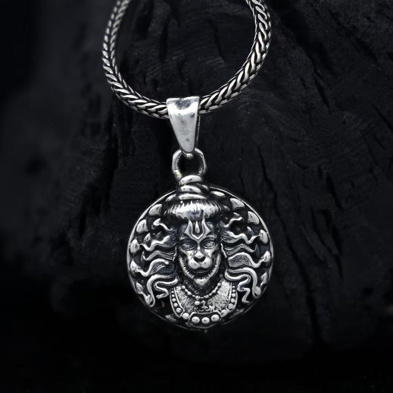 Style Hindu Lord Bajrangbali Hanuman Face Locket With Chain idol Monkey God of Devotion Locket Silver Zinc And Metal Pendant Necklace Chain For Men And Women (1 Pc)