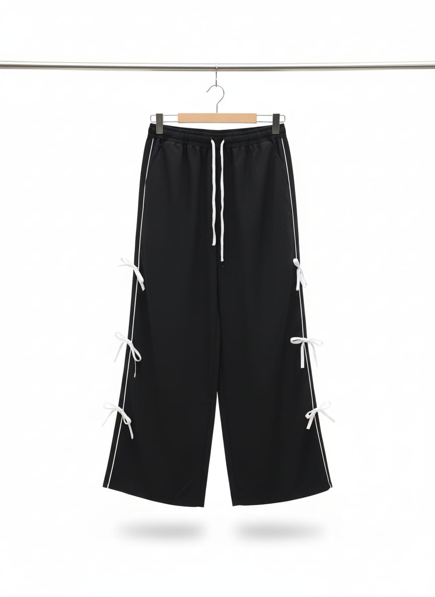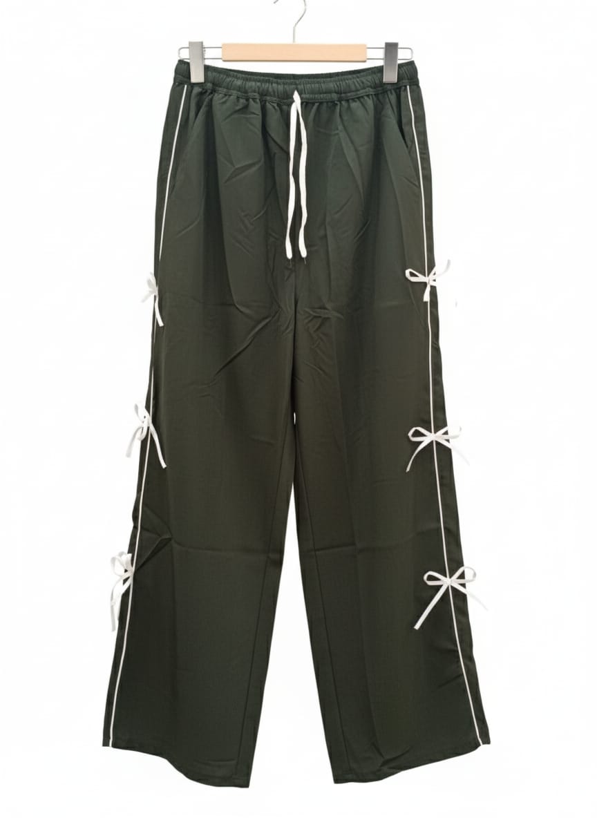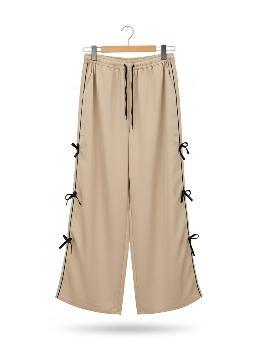 Elevate your casual style with these trendy Cargo pants featuring chic side tie-up detailing. Designed with a comfortable elastic waistband and adjustable drawstring, these pants ensure a perfect fit for all-day wear. The white contrast side panels add a sporty edge, while the black ribbon ties enhance the fashionable look. Pair them with a basic tee and sneakers for a cool, effortless outfit.