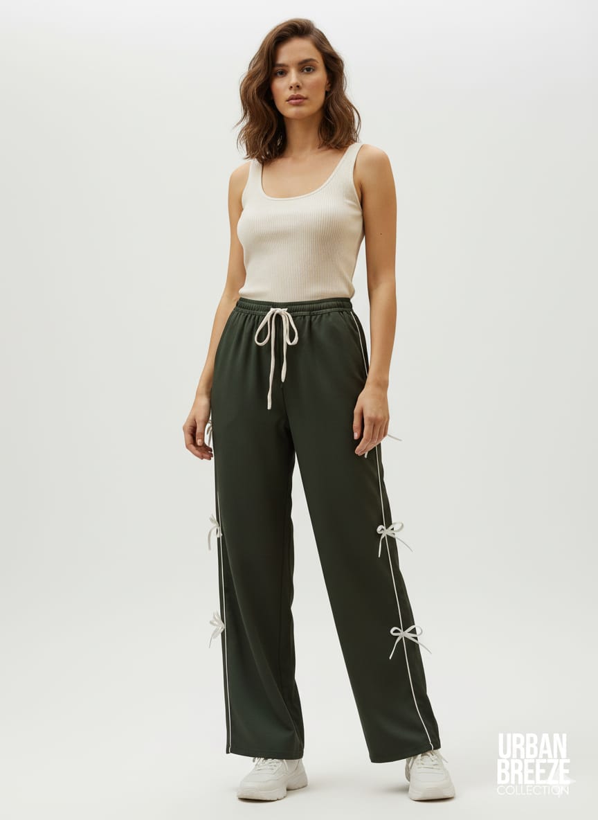 Women Stylish Contrast Side Ribbon Detail Jogger Cargo Pants