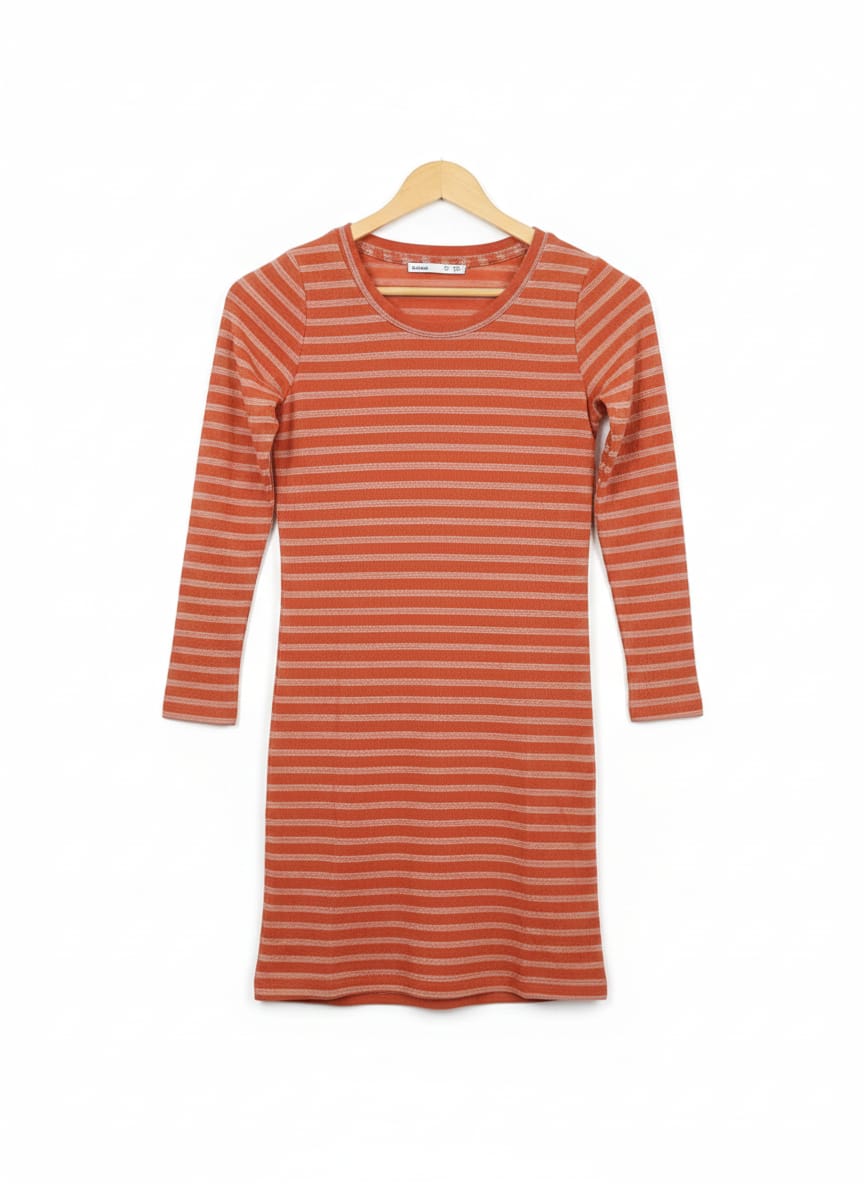 This ribbed full-sleeve bodycon mini dress is designed with soft, stretchable knit fabric that naturally contours your shape without feeling tight. The dress offers a clean, modern silhouette with a comfortable round neckline and a flattering above-knee length.