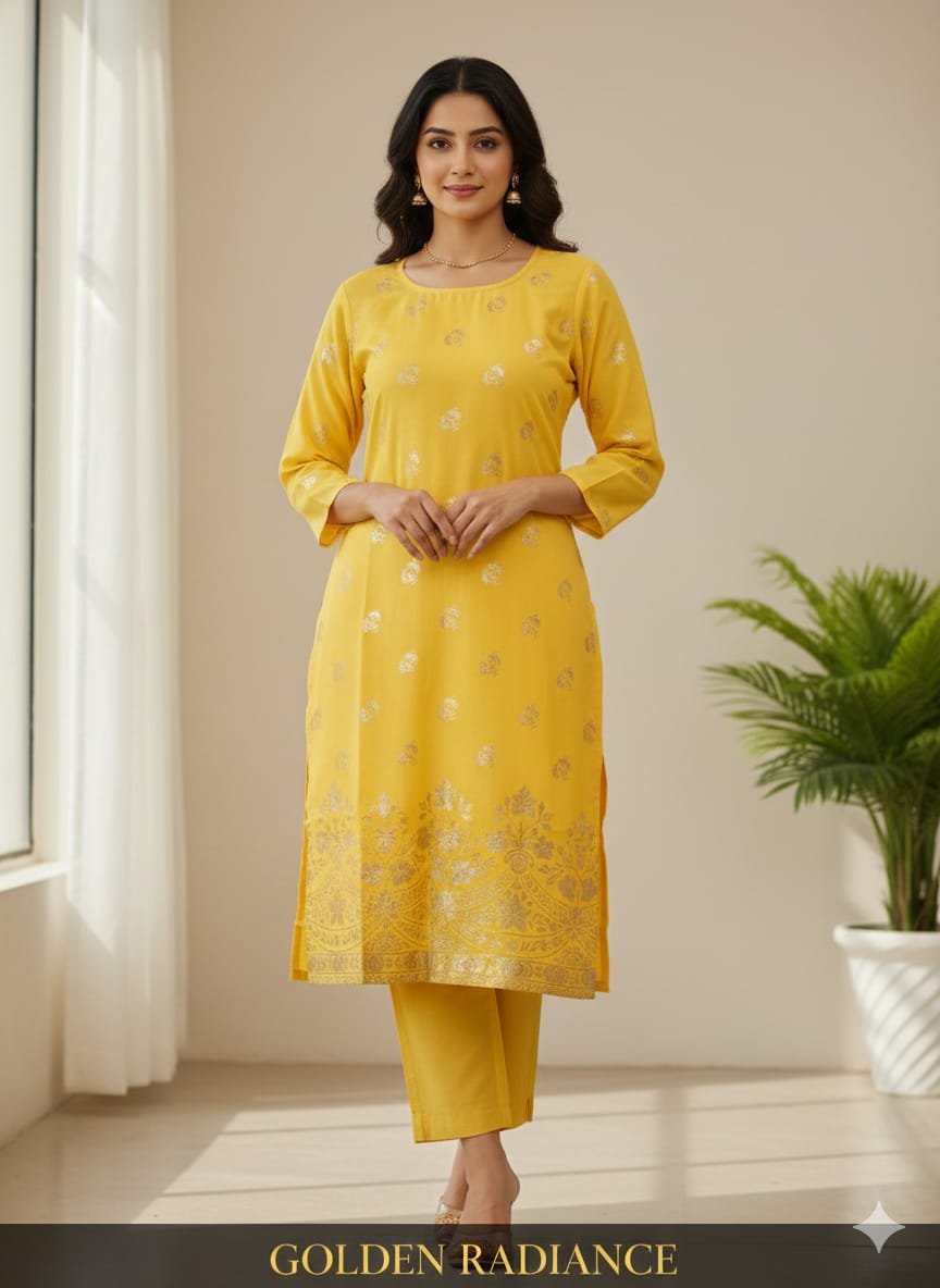 This Yellow Cotton Suit Set is designed for comfort, elegance and everyday style.
